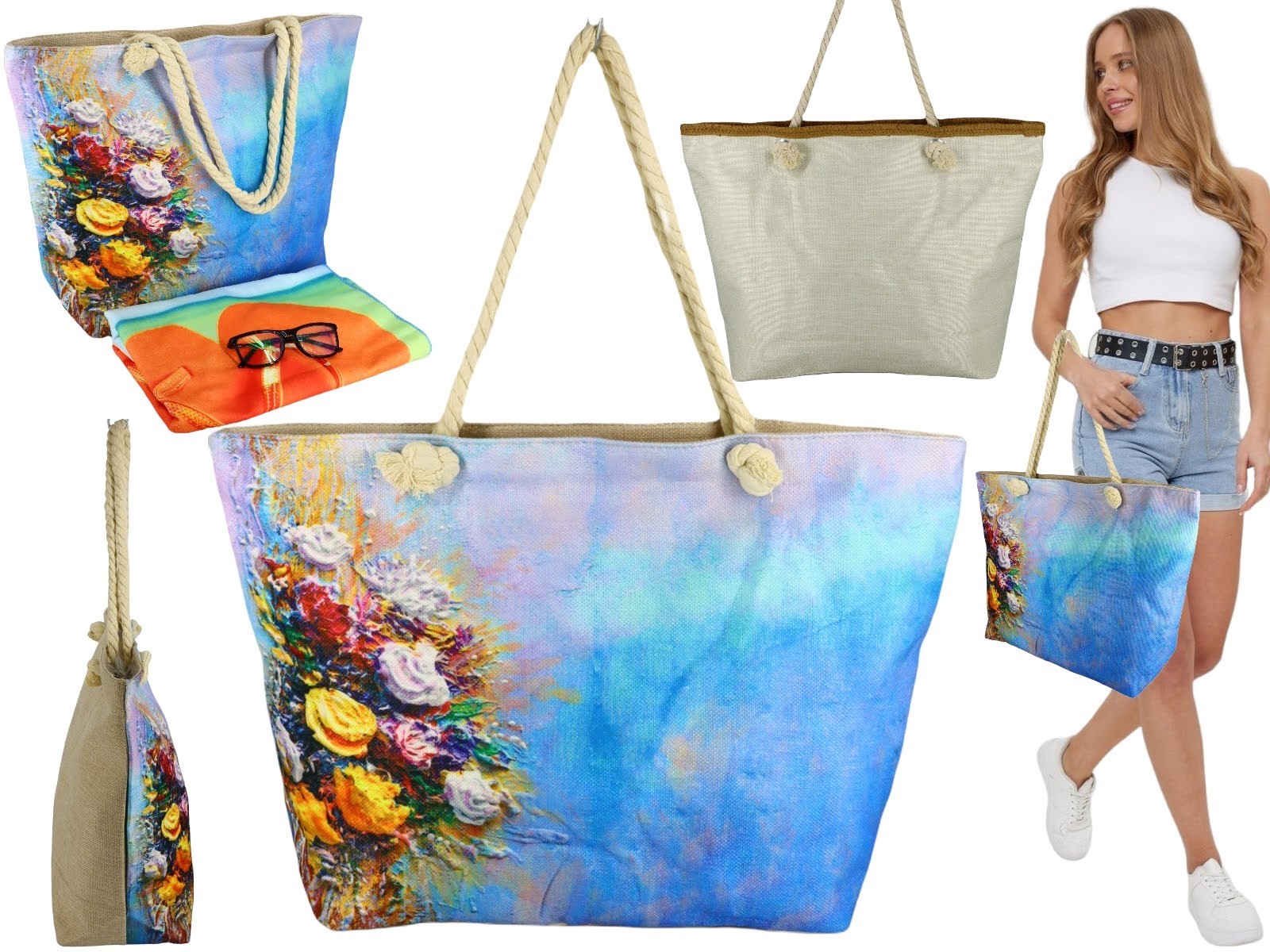 - Torba plażowa w motywy obrazu olejnego z przecudnymi kwiatami.