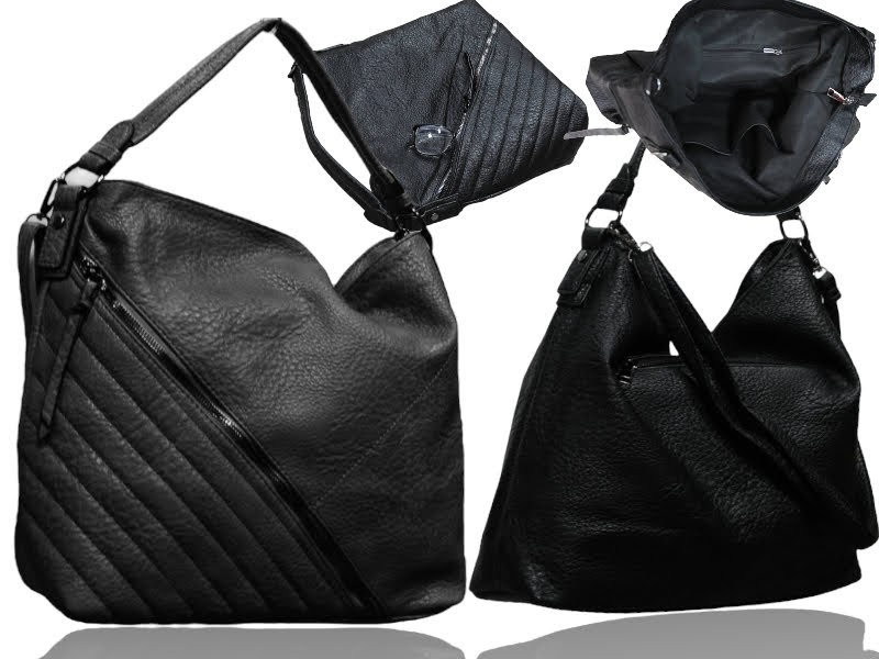 Duża ładna czarna torebka worek - stylowa mieszanka faktur.