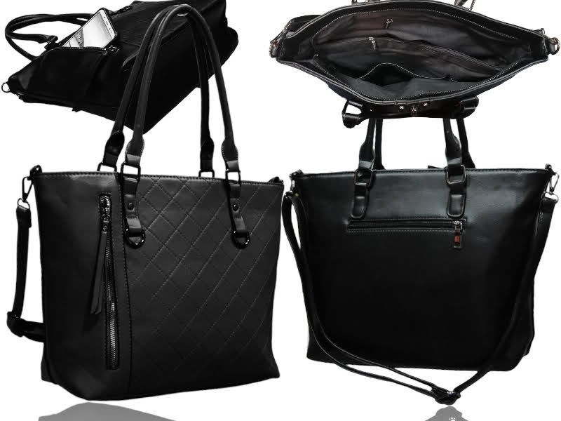 Fantastyczna czarna torebka shopper z pięknym pikowaniem i kieszonką.