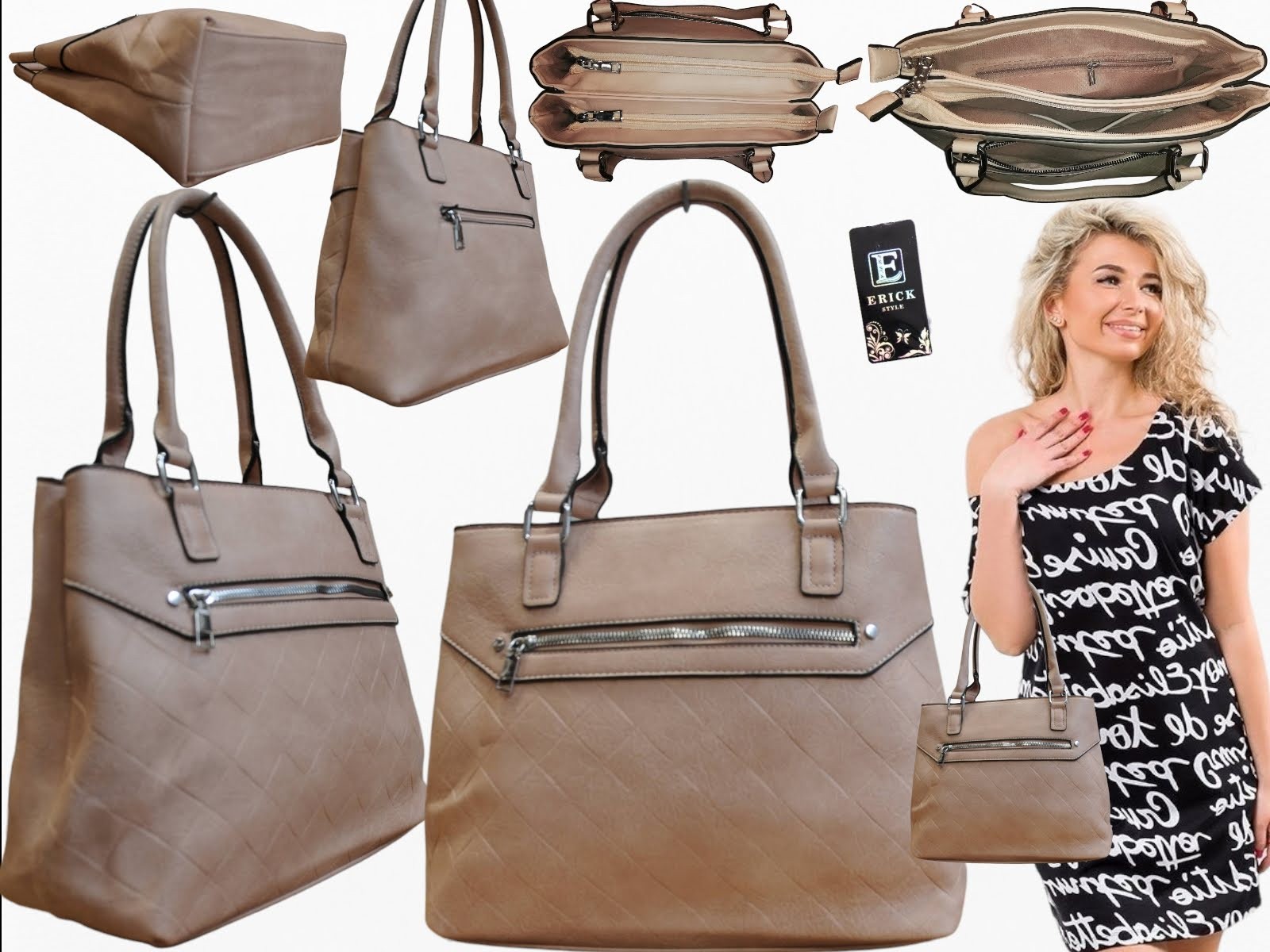 Uniwersalna dwukomorowa torebka z pikowanym przodem, HURT