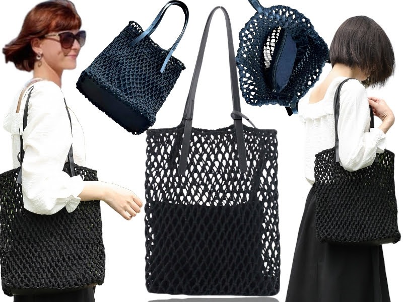 Lekka, przewiewna, modna i zarazem vintage pleciona torebka z bawełnianego sznurka jest idealna na plażę i zakupy. Torba jest bardzo pojemna. Cechą modelu jest twarde dno wykonane z ekoskóry oraz wkładana osobno materiałowa kieszonka zapinana na zamek błyskawiczny. Torba sznurkowa wykonana techniką makramy. Torebka bez podszewki i kieszonek. Stylowa torba idealnie pomieści wszystko, czego potrzebujesz na plażę: ręcznik, butelkę wody, telefon, portfel i inne drobiazgi. Pojemna sznurkowa torebka dobrze znosi wpływ wilgoci, słońca. Rączki z ekoskóry pozwalają nosić torbę plażową na ramieniu, na łokciu, w dłoni. Bez żadnych ograniczeń dziewczyny i starsze panie noszą takie piękne torebki na spotkania, imprezy, spacery. Oryginalny styl VINTAGE to teraz prawdziwy must have.